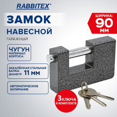 Замок навесной чугунный "Влагонепроницаемый", ширина 50 мм, полимерное покрытие, английский, 3 ключа, RABBITEX (РАББИТЕКС), 671297